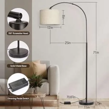 Transform your living space with the stunningly modern Dimmable Floor Lamp. This exquisite arc floor lamp not only serves as a stylish addition to your home but also caters to your lighting needs with its versatile features. Designed with a chic black finish and an adjustable hanging shade, it perfectly complements various decor styles, whether you place it in the living room, bedroom, or office.