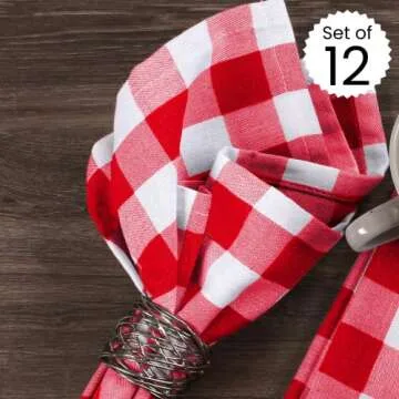 Dine n Decor Buffalo Plaid Cloth Napkins 100% Cotton - Ideal for Events Wedding Christmas Easter - Perfect Everyday Use Cloth Napkins 18x18 - Set of 12 Gingham Check Napkins- Red White