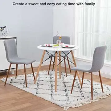 Show more Introducing the perfect blend of style and comfort for your dining space: the Set of 4 Kitchen Dining Room Chairs! These chairs are designed not just for functionality, but to elevate your dining experience to new heights. With their comfortable and breathable upholstery, the wear-proof thick padding ensures that every meal becomes a delightful experience. Each chair is equipped with specially designed rubber pads at the bottom legs, which not only protect your floors from scratches but also minimize noise during use, allowing for a peaceful dining ambiance.