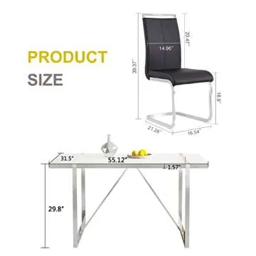 The dining chairs are made from premium PU leather, providing a breathable and soft touch, ensuring maximum comfort during your family meals or gatherings. Each chair is filled with high elasticity sponge to enhance seating comfort, making them an excellent choice for those long dinner conversations. The chrome-plated metal frame adds an elegant touch and supports a weight of up to 300 lbs.