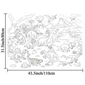 Show moreIntroducing the Dinosaur Giant Coloring Poster for Kids, a vibrant and expansive canvas that measures a whopping 43.3 x 31.5 inches (110 x 80 cm), making it the ultimate coloring activity for multiple children to enjoy simultaneously. This innovative giant coloring tablecloth is specifically designed to spark creativity and learning through the colorful world of dinosaurs. Ideal for classrooms, birthday parties, or family gatherings, this fun-filled activity invites young artists to unleash their imaginative potential in a playful environment. Its premium quality construction ensures durability and long-lasting fun as children create their own artistic masterpieces on a background of engaging dinosaur designs.
