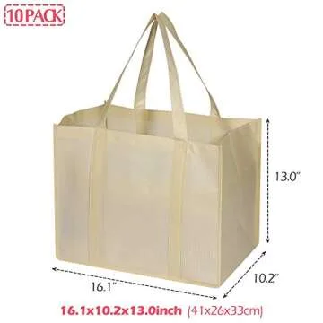 DIOMMELL 10 Pack Reusable Grocery Bags Extra Large Super Strong Heavy Duty Shopping Tote Bags with Reinforced Handles, Beige