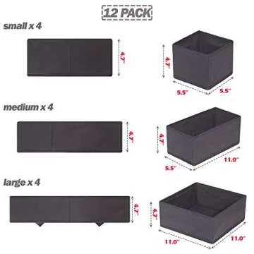 DIOMMELL 12 Pack Foldable Cloth Storage Box Closet Dresser Drawer Organizer Fabric Baskets Bins Containers Divider for Baby Clothes Underwear Bras Socks Lingerie Clothing,Dark Grey 444