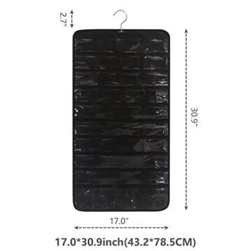 Show moreDiscover the ultimate solution to your jewelry storage woes with the DIOMMELL 80 Pockets Hanging Jewelry Organizer. Designed specifically for the modern woman, this remarkable organizer features 80 pockets—40 on each side—allowing you to easily store and display your precious items. Made from high-quality non-woven fabric with a clear PVC window, it not only keeps your jewelry safe and tangle-free but also ensures visibility so you can find your favorite pieces in a snap. Measuring at 17.0 inches W x 30.9 inches H, it conveniently hangs on doors, walls, or closet poles, blending seamlessly into your living space and making organization stylish.