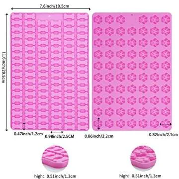 Show more Discover the joy of creating delightful treats for your furry friends with our exceptional silicone paw print and dog bone molds. Crafted from high-quality food-grade silicone, these molds are BPA-free, non-toxic, and designed for high-temperature resistance, making them a safe choice for your pet treats. Measuring approximately 11.6x7.6x0.51 inches, the paw print mold features 69 cavities, while the dog bone mold boasts 106 cavities, perfect for creating an array of adorable treats.