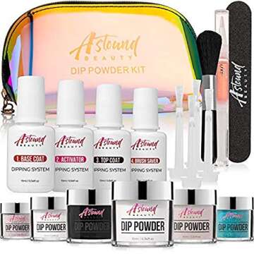 Dip Powder Nail Kit - 6 Color with Glitter Dipping Powder Starter Kit - Nail Dip Powder All-in-One Travel Kit
