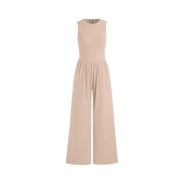 DIRASS Womens Jumpsuit Jumpsuit Women Dressy One Piece Outfits Sleeveless Crew Neck Wide Leg Pants Rompers With Pockets