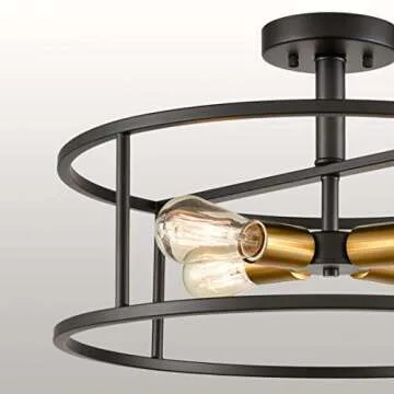 Show moreIlluminate your home with the stunning DIRYZON EUL Industrial Semi Flush Mount Ceiling Light, a beautifully crafted vintage rustic pendant that seamlessly combines industrial style with modern elegance. This exquisite chandelier features a durable metal frame with a chic black finish that promises not only longevity but also a timeless aesthetic appeal. Each light fixture comes designed to accommodate up to four 60W E26 bulbs (bulbs not included), providing ample illumination for any space while creating an inviting ambiance.