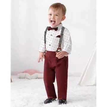 Show moreIntroducing the Disaur Toddler Boy Dress Outfit, the perfect blend of style and comfort for your little gentleman! Crafted from a high-quality cotton blend (95% cotton and 5% other materials), this outfit ensures that your child will stay soft and breathable, making it ideal for any formal occasion. This chic 3-piece ensemble includes a fashionable dress shirt, stylish suspender pants, and an adorable removable bow tie, helping your young one stand out at weddings, parties, and family gatherings.