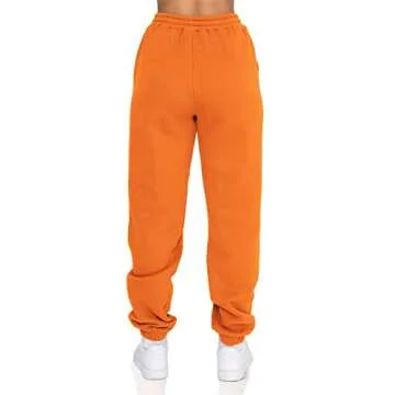 DISCIPBUSH Fleece Lined Womens Sweatpants - High Waisted Joggers for Women, Cotton Drawstring Baggy Sweats Women Pants Orange L