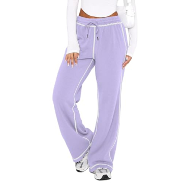 DISCIPBUSH Track Pants Women - Soft Wide Leg Sweatpants Women Drawstring Lounge Pants Women Joggers with Pockets Purple XS