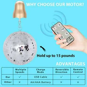 Show moreIntroducing the revolutionary ABXKZ Disco Ball Motor with Remote Control - your ultimate partner in transforming any decorative experience into a captivating display! This electric, battery-operated motor is not just any ordinary spinning accessory; it's designed to breathe life into your hanging decor, from stunning mirror balls to delightful crib mobiles, making it an essential addition to family celebrations and stylish home aesthetics alike. With a handy remote control, you have complete command over the motor's operation, so you can easily turn it on or off and adjust its rotation to mold the ambiance just the way you want it.