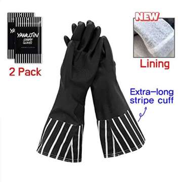 Dish washing Rubber Cleaning Gloves,Black design with Long Stripe Cuffs, Waterproof Household Latex Gloves, Long Cuff, Warm Lining