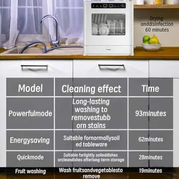 Show moreTransform your dishwashing experience with our Dishwasher Countertop—a portable, small automatic cleaning unit that is a must-have for modern kitchens! Measuring just 17×15.3×18.1 inches, this sleek dishwasher is designed to fit comfortably in tight spaces on your countertop, making it perfect for apartments, small kitchens, and even camping trips. With a spotless white finish, it not only enhances the aesthetic of your kitchen but also combines form and functionality seamlessly. Enjoy an effortless cleaning process with its five versatile washing programs—quick wash, energy-saving wash, separate drying, strong wash, and fruit wash—ideal for all your dishware and even fruits and vegetables. Experience a new level of convenience and efficiency with this powerful little powerhouse.