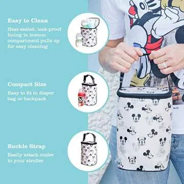 Show more Disney Baby by J.L. Childress introduces the ultimate on-the-go solution for parents with the TwoCOOL Breastmilk Cooler—a charming, officially licensed Disney product that marries functionality with a delightful touch of magic. This insulated cooler is designed not only to keep your little one's bottles fresh but also to add a sprinkle of joy to family adventures. Whether you’re heading to the park or running errands, this cooler ensures that you never have to compromise on your baby's nutritional needs. With its sleek design showcasing the beloved Mickey and Minnie Mouse, this cooler is a perfect blend of Disney charm and practical utility, making it a must-have for every parent.