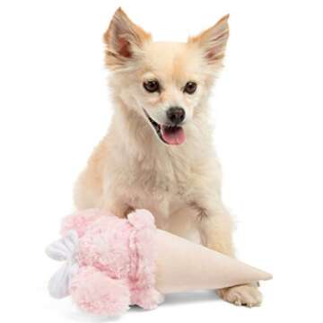 Introduce your four-legged friend to one of the most beloved characters of our time with the Minnie Mouse toy ice cream cone/pillow. This plush dog toy cone/pillow features an ultra-soft micro plush exterior. The toy includes two squeakers to provide your furry friend with stimulation and entertainment. age range: All life stages