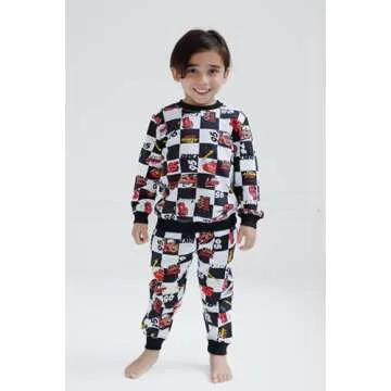 Disney Cars Lightning McQueen Tow Mater Toddler Boys French Terry Sweatshirt and Jogger Pants Outfit Set Black/White 3T