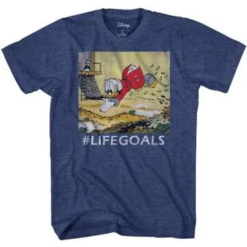 Officially Licensed by Disney Featuring Scrooge McDuck Men's Sizing, Heather Charcoal, Heather Grey, Heather Red and Heather Navy, Poly/Cotton Blend. HEATHER GREY available in BIG AND TALL.