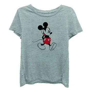 Disney Ladies Mickey Mouse Fashion Shirt - Ladies Classic Mickey Mouse Clothing Mickey Mouse Washed Short Sleeve Tee (Washed Grey, Small)