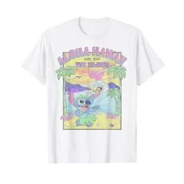 Introducing the enchanting Disney Lilo & Stitch Aloha Hawaii Come Visit The Islands T-Shirt—a delightful tribute to the beloved characters from Disney's animated classic. Crafted with a lightweight and classic fit, this officially licensed T-shirt is perfect for fans of all ages, including women, men, youth, and toddlers. The pristine white fabric beautifully accentuates the vibrant vintage graphic print, making each piece a standout addition to any wardrobe. You can enjoy...
