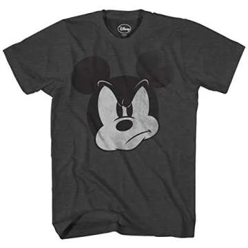 Disney Mad Mickey Mouse T-Shirt Shirt for Men Adult Graphic Tshirt Men's Tee Gift Merch Women Apparel Clothes Stuff Novelty Vintage (Large, Heather Charcoal)