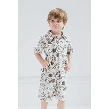 Disney Mickey Goofy Donald Duck Toddler Boys Cotton Gauze Button Down Dress Shirt and Shorts Outfit Set 2T
