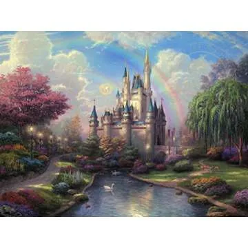 Show moreEmbark on a magical journey with the Disney Parks A New Day at the Cinderella Castle Thomas Kinkade 1000 Piece Jigsaw Puzzle. Immerse yourself in the enchanting world of Disney as you piece together this stunning puzzle, meticulously crafted to celebrate the iconic Cinderella Castle. This collection, designed by renowned artist Thomas Kinkade, is filled with vibrant colors and intricate details that capture the essence of a fairytale. Each piece clicks perfectly into place, making for a rewarding experience for both new and seasoned puzzle enthusiasts.
