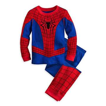 Show moreTransform bedtime into an adventure with the Disney Store Deluxe Spiderman Pajamas for boys and toddlers. Inspired by the vibrant and iconic Spidey uniform from The Amazing Spider-Man 2, these pajamas are made with care, featuring reliable quality and durability that only an authentic Disney product can provide. The set includes a stylish pajama top decorated with stunning screen art of your little hero's favorite character, ensuring that your child can dive into their dreams as they embody the spirit of Spiderman. The coordinating elastic-waist pajama pants are designed for comfort and ease, making these pajamas a perfect choice for unrestricted nighttime movement. Crafted from 100% cotton, they promise a soft and cozy feel against your child's skin for a delightful night’s sleep.
