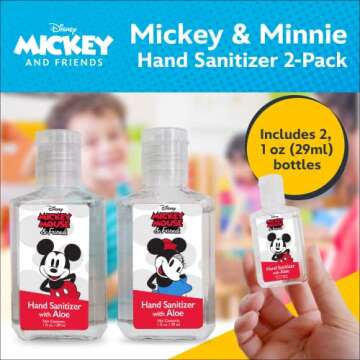 Our cute designs featuring beloved Disney characters like Mickey and Minnie are ideal for kids. This travel-size hand sanitizer set clips perfectly to their backpacks or purses, ensuring your little ones never forget to sanitize before enjoying their day at the theme park!