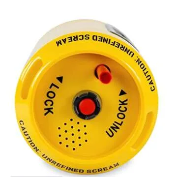 Press the red button on top to activate the sound; twist the lid open to hear the fun screams.