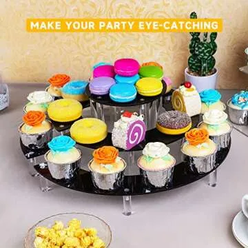 Display Stand Shelf For Pop Figure, 3 Tier Black Acrylic Cupcake Stand, Perfume Organizer Stands, 2 Pack Half Moon Dessert Stand for Display Or Collections