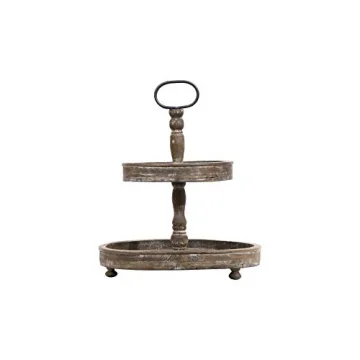 Show moreIntroducing the elegant 2-tier decorative tray, a versatile and stylish solution for your home organization and decor needs. Crafted with a beautiful distressed black finish, this tray not only provides functionality but also adds a rustic charm to any space. The larger tray measures 15 inches wide with a generous 6 inches of space between the center pole and the sides, allowing you to place larger items with ease. The smaller tray, measuring 10 inches wide with 3.75 inches of space, is perfect for a variety of smaller items. Constructed with sturdiness in mind, this tray is designed to last, exceeding the expectations of those who appreciate quality craftsmanship. Whether you are entertaining guests, decorating for the seasons, or simply decluttering your countertop, this 2-tier tray makes a perfect addition to your kitchen or dining area.
