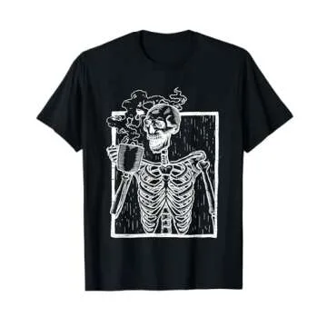 When pitted against similar products, the Distressed Skeleton Vintage Smiling Skull Drinking Coffee T-Shirt stands out due to its unique graphic design and comfort level. While other brands may offer generic prints, this t-shirt provides an artistic touch without compromising quality or fit. Additionally, the price point is competitive, making it an attractive choice in the realm of novelty t-shirts.