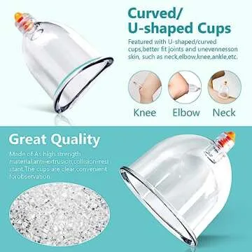 Crafted from premium polycarbonate (PC) material, this upgraded cupping therapy set boasts exceptional heat resistance and durability. Each suction massage cup is robust enough to withstand a 20-foot drop without cracking, ensuring you can focus on your therapy without worrying about damaging your equipment. And when it's time to clean, these cups can be sanitized with boiling water for your peace of mind.