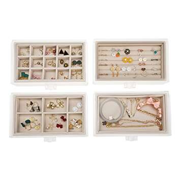 Ditucu Clear Acrylic Jewelry Box with 4 Drawers Removable Divided Jewelry Organizer For Earring Necklace Ring & Bracelet Clear and Rings Jewelry Display Storage For Women Beige
