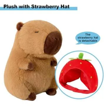 Show moreIntroducing the Ditucu Cute Capybara Plush with Strawberry Hat, an enchanting 13-inch stuffed animal that combines cuteness and comfort for both children and adults alike. Perfectly designed to brighten up any day, this delightful capybara is made from high-quality materials that promise durability and an irresistibly soft texture. Crafted with meticulous attention to detail, it features a cute detachable strawberry hat that adds a playful flair to its already adorable appearance. Whether you’re looking for a cuddle buddy, a decorative piece for your home, or a unique gift, this capybara is ideal for any occasion.