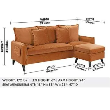 Measuring 73.2 inches in width and 51.5 inches in depth, this compact couch fits seamlessly into a studio apartment or a cozy nook in your home. The minor assembly required is straightforward, with all hardware and instructions included to make setup a breeze. Whether you're hosting friends, curling up with a good book, or enjoying movie nights, this sectional sofa is versatile enough to cater to all your needs.
