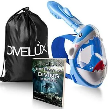 Show more Discover the aquatic wonders like never before with the DIVELUX Full Face Snorkel Mask. This innovative snorkeling gear is expertly designed to provide an unparalleled 180° panoramic view, allowing you to see everything happening around you while exploring the mesmerizing underwater environment. Whether you’re an adventurous adult or a curious kid, this full-face mask provides the most immersive diving experience, making every moment beneath the surface unforgettable. Enjoy the freedom of natural breathing through both your nose and mouth, eliminating the discomfort often associated with traditional snorkeling gear.