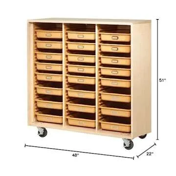 Show moreIntroducing the Diversified Woodcrafts MTTC-4824 Mobile Tote Tray Storage Cabinet, a versatile storage solution designed for educators, craft enthusiasts, and organizational aficionados! This robust cabinet effortlessly accommodates up to 24 plastic totes, each measuring 19" x 14-1/2" x 3-1/2" in height, making it ideal for safeguarding art supplies, classroom materials, or craft essentials. Crafted from durable materials with a resilient 1" bottom, this cabinet promises longevity and performance, ensuring that your belongings are not just stored but also secured.