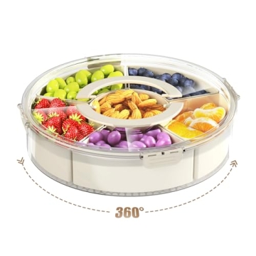 Show moreIntroducing the ultimate solution for snack organization and enjoyment—a versatile snack box designed for all ages and occasions. This innovative product boasts a unique rotating design with a 360-degree tray, featuring 6 compartments that keep snacks separated and easily accessible. Made of high-quality food-grade materials, this snack container is perfect for a wide variety of treats, including fruits, nuts, candies, and more. It’s not just functional but also stylish, offering a sleek look that fits perfectly in any setting—from your kitchen to outdoor picnics. The compact size makes it travel-friendly, allowing you to take your favorite snacks wherever you go, whether it's a beach day, family party, or a fun road trip.