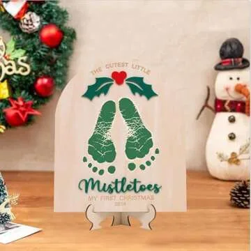 DIY Christmas Footprint or Handprint Art, Baby's First Christmas, The Cutest Little Mistletoes, Custom Children's Keepsake, Personalized Baby Christmas Decor (Green Mistletoe Footprint)