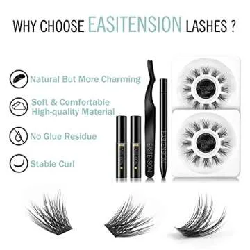 DIY Eyelash Extension EASITENSION Individual Bounded Glue Lash Clusters 3D Effect Volume Lashes Set, Home Eyelash Extension, C curl Lashes Pack 12mm,14mm (KIT-Volume)
