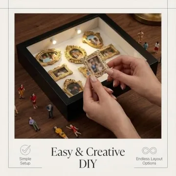 - Comprehensive DIY Kit: Unleash your creativity with a complete set that includes 8 mini gold frames and 10 unique figurines, perfect for crafting your very own personalized shadow box.