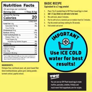 Show moreDiscover the revolutionary DIY Plant-Based Egg, your perfect solution for delicious, egg-free cooking. This innovative product is designed for everyone, whether you have dietary restrictions or just want to incorporate more plant-based options into your meals. With a dry blend made primarily from chickpea flour, it’s a great alternative for those who are allergic to eggs or seeking a vegan lifestyle. Keep it conveniently stored in your cupboard and enjoy hassle-free egg meal prep anytime you desire.