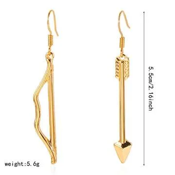 Show moreIntroducing the dazzling DIYANMMY Unique Simulation Gold Silver Asymmetry Bow and Arrow Drop Earrings – a perfect blend of style and personality! Measuring 5.5cm (2.16 inches) and weighing only 5.6g, these lightweight earrings are designed for all-day comfort. Crafted with a striking asymmetric Cupid's arrow motif, these earrings will add a chic touch to any outfit, making them ideal for everyday wear or special occasions. Constructed from materials that are nickel and lead-free, these earrings are safe for sensitive skin, ensuring you can wear them without any worries.