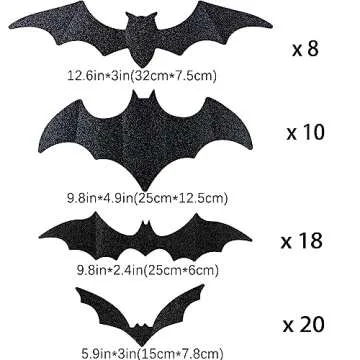 Show moreTransform your Halloween celebrations with the DIYASY Large Bats Wall Décor! This incredible set features **56 large glitter bats** in a delightful array of four sizes, making it perfect for any spooky setting. Crafted from **waterproof PVC**, these bats showcase a unique bright powder design that not only looks spectacular but ensures they withstand the elements. With dimensions ranging from **12.6x3 inches** to **5.9x3 inches**, these bats cater to various decorating needs, allowing you to create an eerie ambiance that your guests and trick-or-treaters will remember.