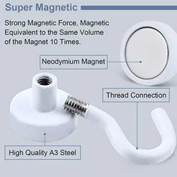 DIYMAG Magnetic Hooks, 30Lbs Strong Heavy Duty Cruise Magnet S-Hooks for Classroom, Fridge, Hanging, Kitchen etc, (6 Pack-White)