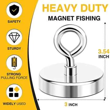 Introducing the **DIYMAG Super Strong Neodymium Fishing Magnet**, the ultimate tool for all your magnetic fishing adventures! Designed for enthusiasts and professionals alike, this robust magnet boasts a **pulling force of 700 LBS (317 KG)** under optimal conditions, making it ideal for retrieving heavy items from rivers, lakes, and other bodies of water. With a diameter of **2.95 inches (75 mm)**, this magnet is engineered for superior performance and durability.