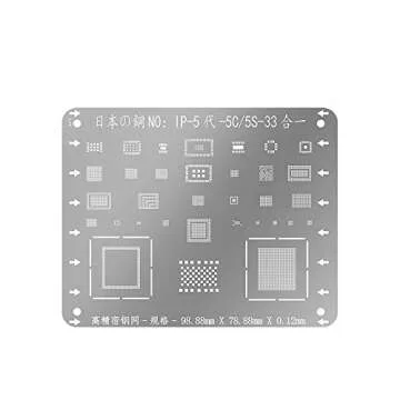Show moreIntroducing the DIYPHONE 0.12MM 33-IN-1 Multi-Purpose BGA Reballing Stencil Soldering Template, an essential tool for professionals and DIY enthusiasts alike working with BGA IC chips on iPhone 5/5C/5S devices. This meticulously engineered stencil set ensures precision in soldering, featuring a robust design that maintains integrity even under the heat of soldering tasks. Made from high-quality materials, this stencil allows for consistency and accuracy, providing you with everything you need to restore devices to their optimal performance.