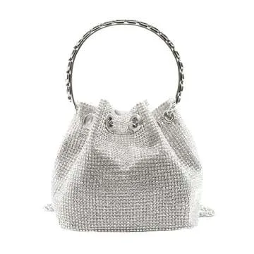 DJBM Women Full Diamonds Bucket Handbag Rhinestone Clutch Purse Evening Clutch for Women Party Prom Cocktail Wedding, Silver